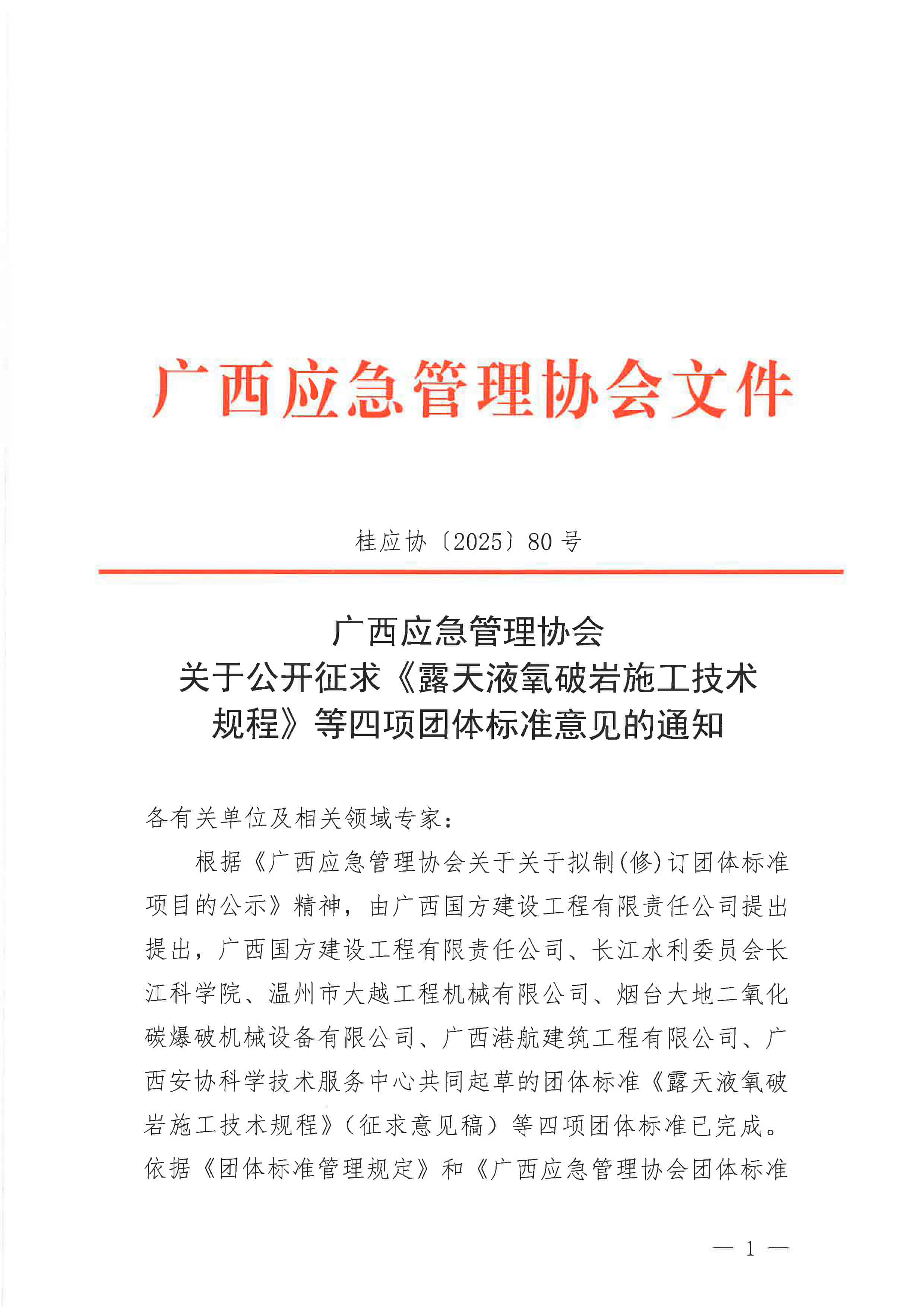 桂应协〔2025〕80号关于公开征求《露天液氧破岩施工技术规程》等4项团体标准意见的通知.pd