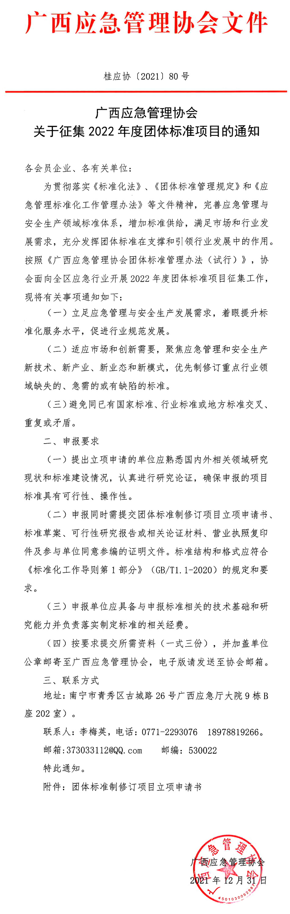 关于征集2022年度团体标准项目的通知