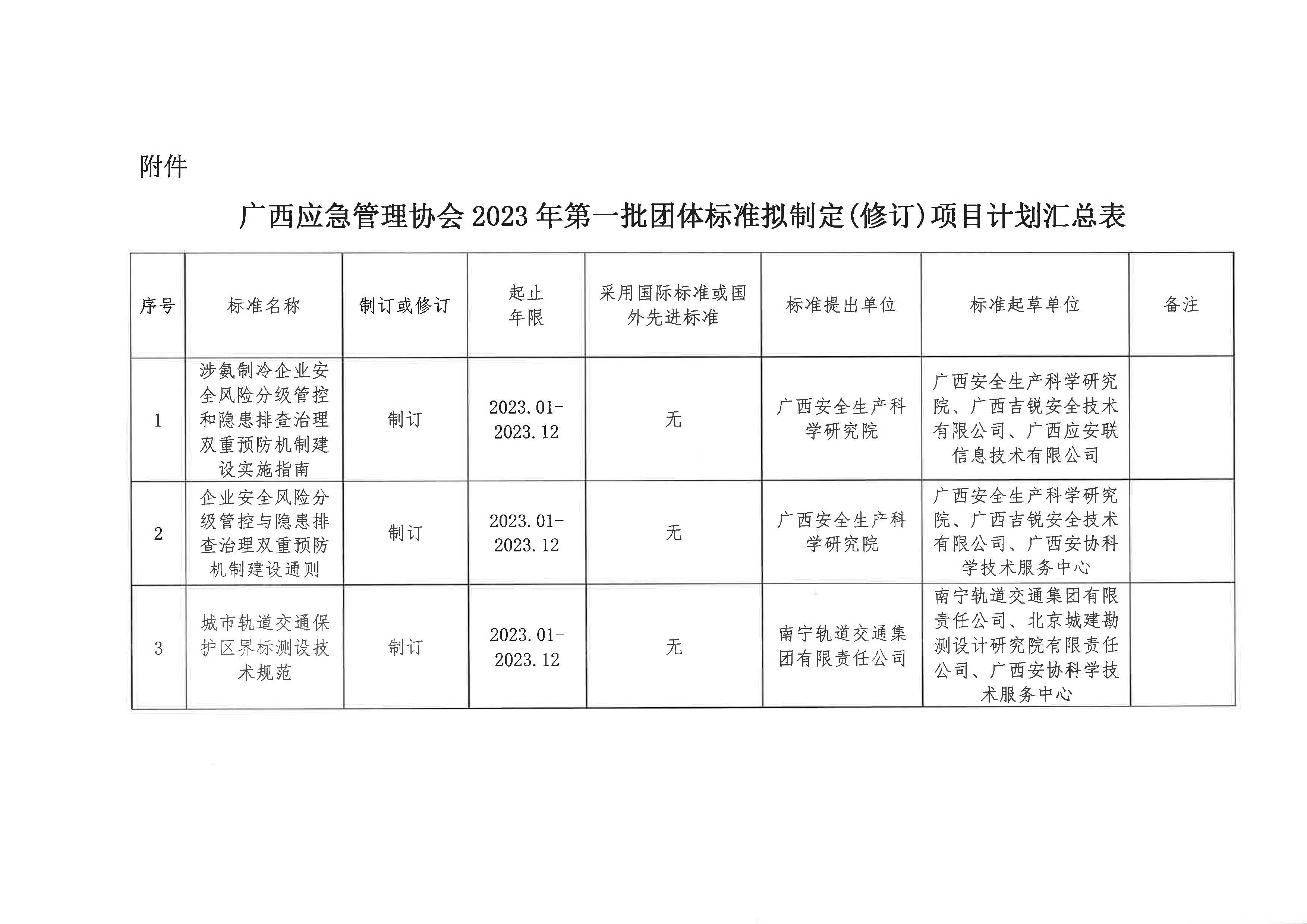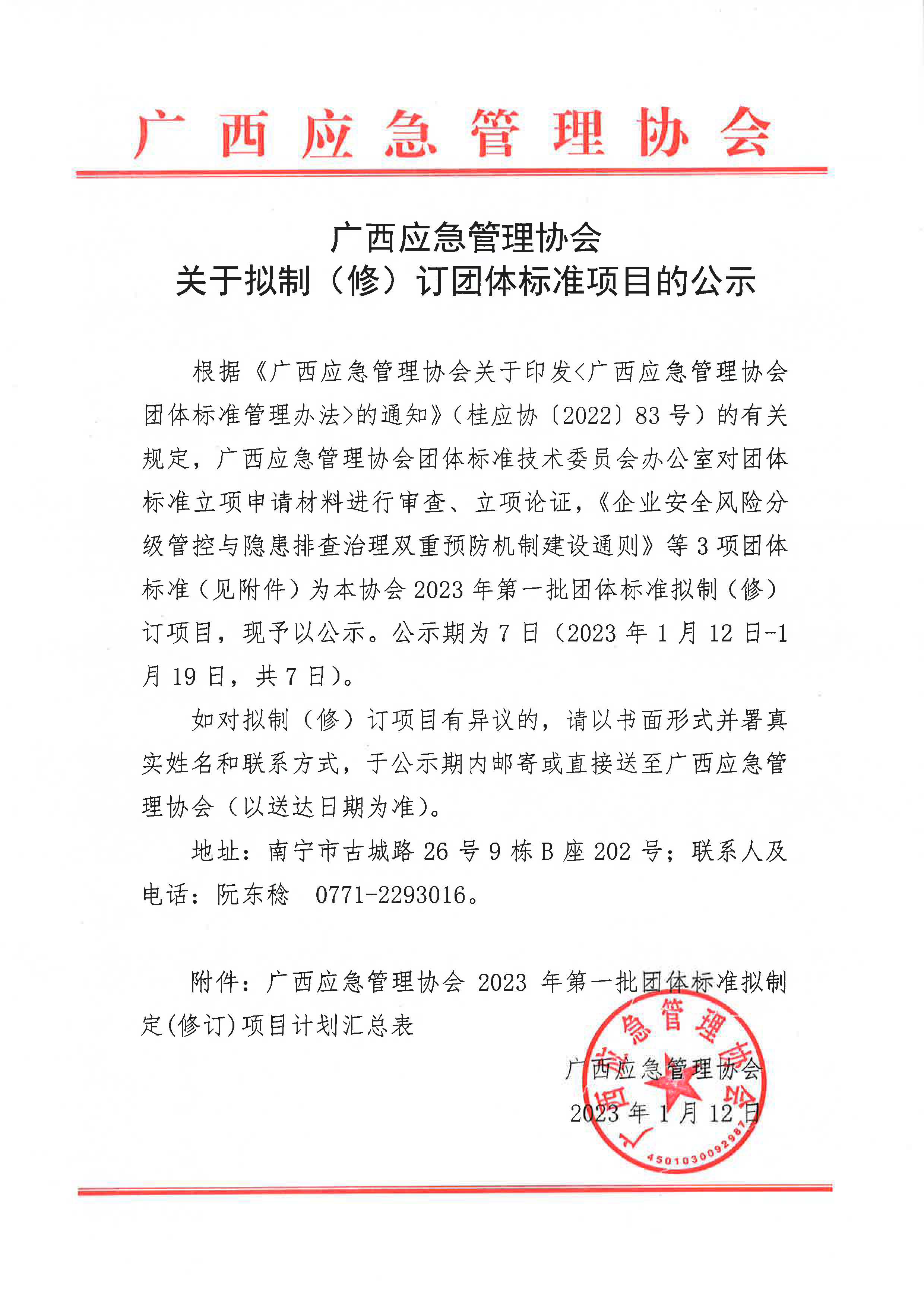 广西应急管理协会关于拟制(修)订团体标准项目的公示